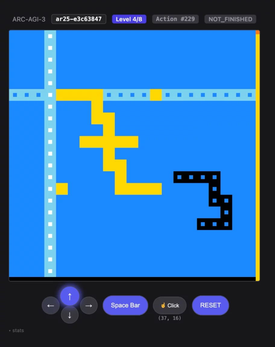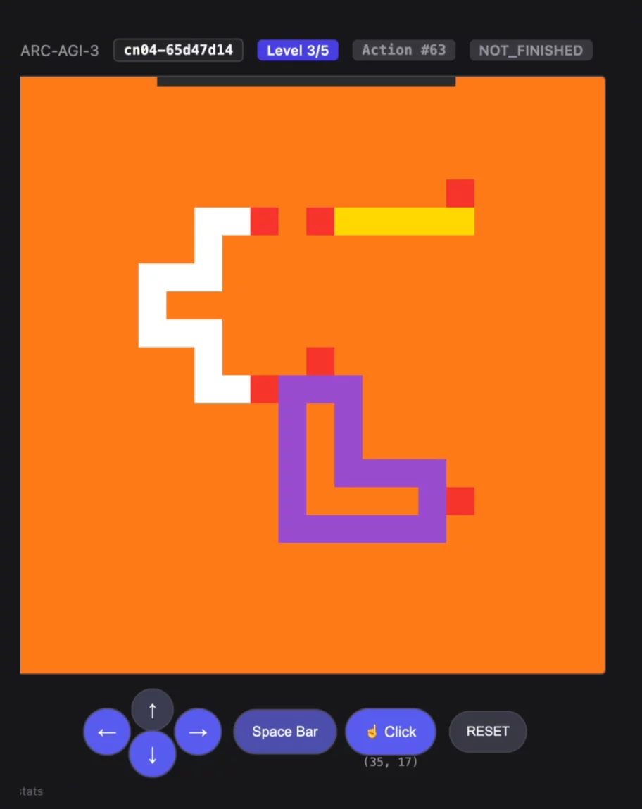 The Agentica SDK by Symbolica achieves an unverified competition score of 36.08% on ARC-AGI-3 [1], passing 113 out of 182 playable levels, and completes 7 out of the 25 available games [2].